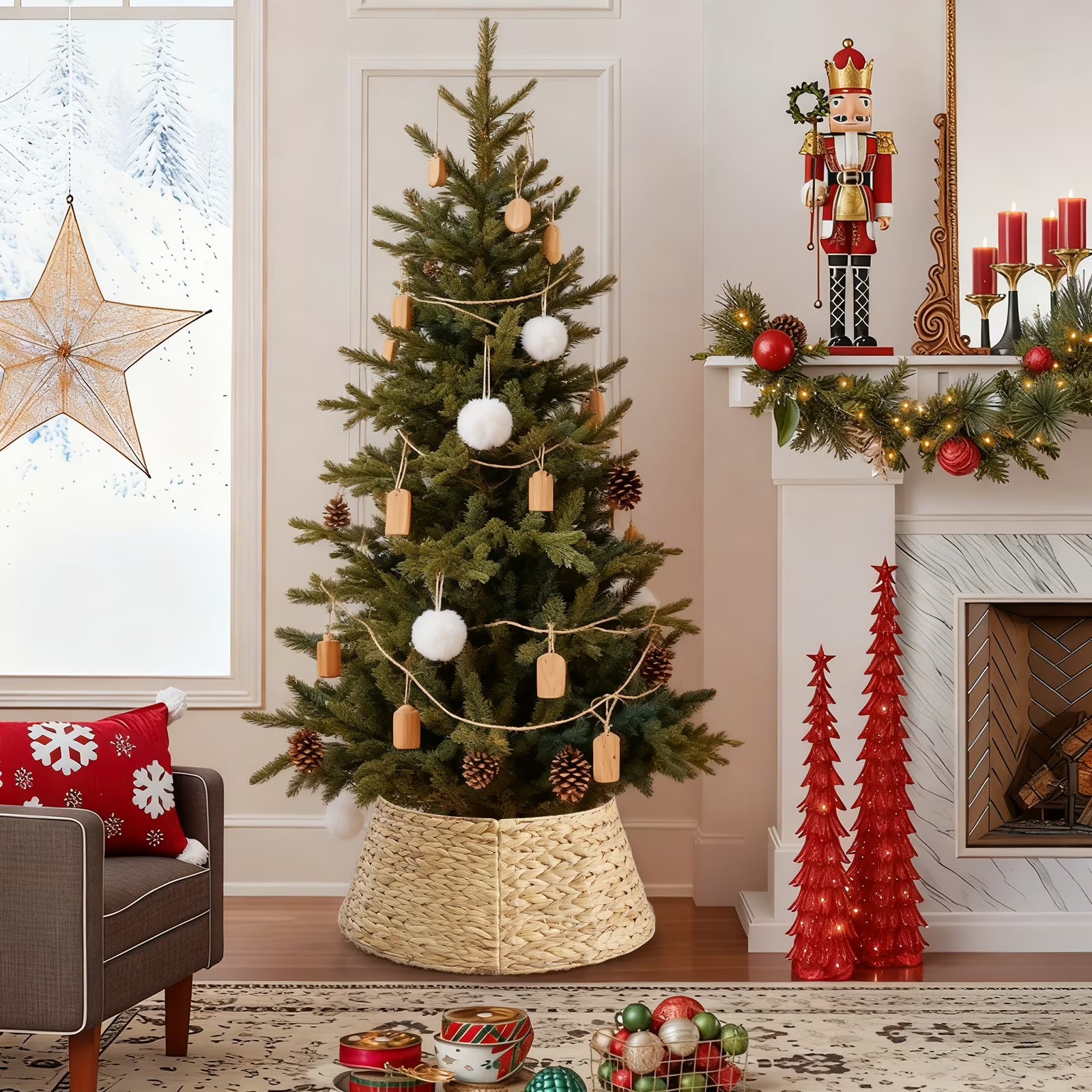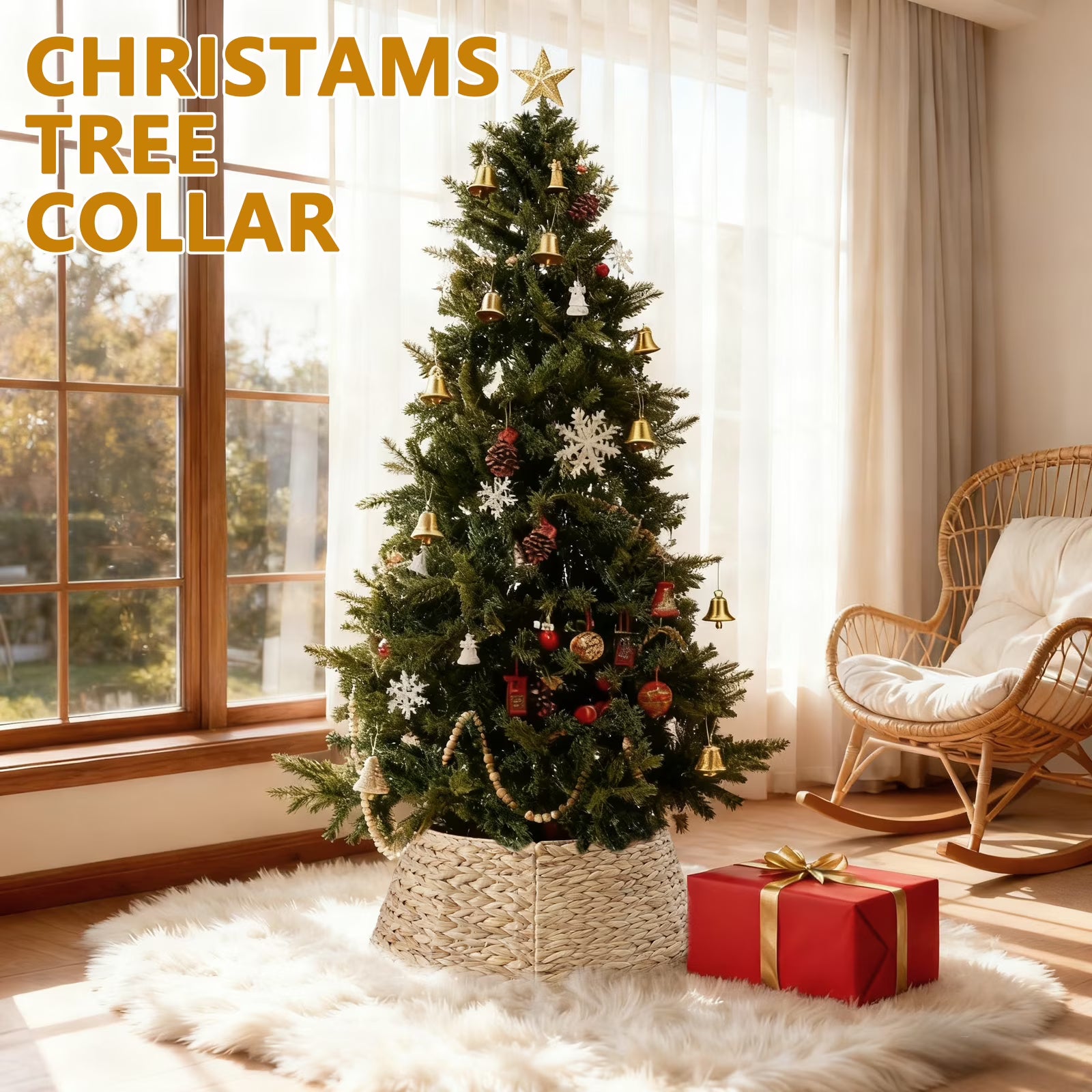 Elevate your holiday decor with the CONCETTA Christmas Tree Collar, a beautifully handwoven farmhouse-style base cover designed to seamlessly hide unsightly tree stands and tangled cords. Crafted for both elegance and convenience, its detachable design allows for effortless installation and storage, making it simple to achieve a polished, magazine-worthy look. This versatile basket base is the perfect finishing touch to create a warm and inviting festive atmosphere in your home.