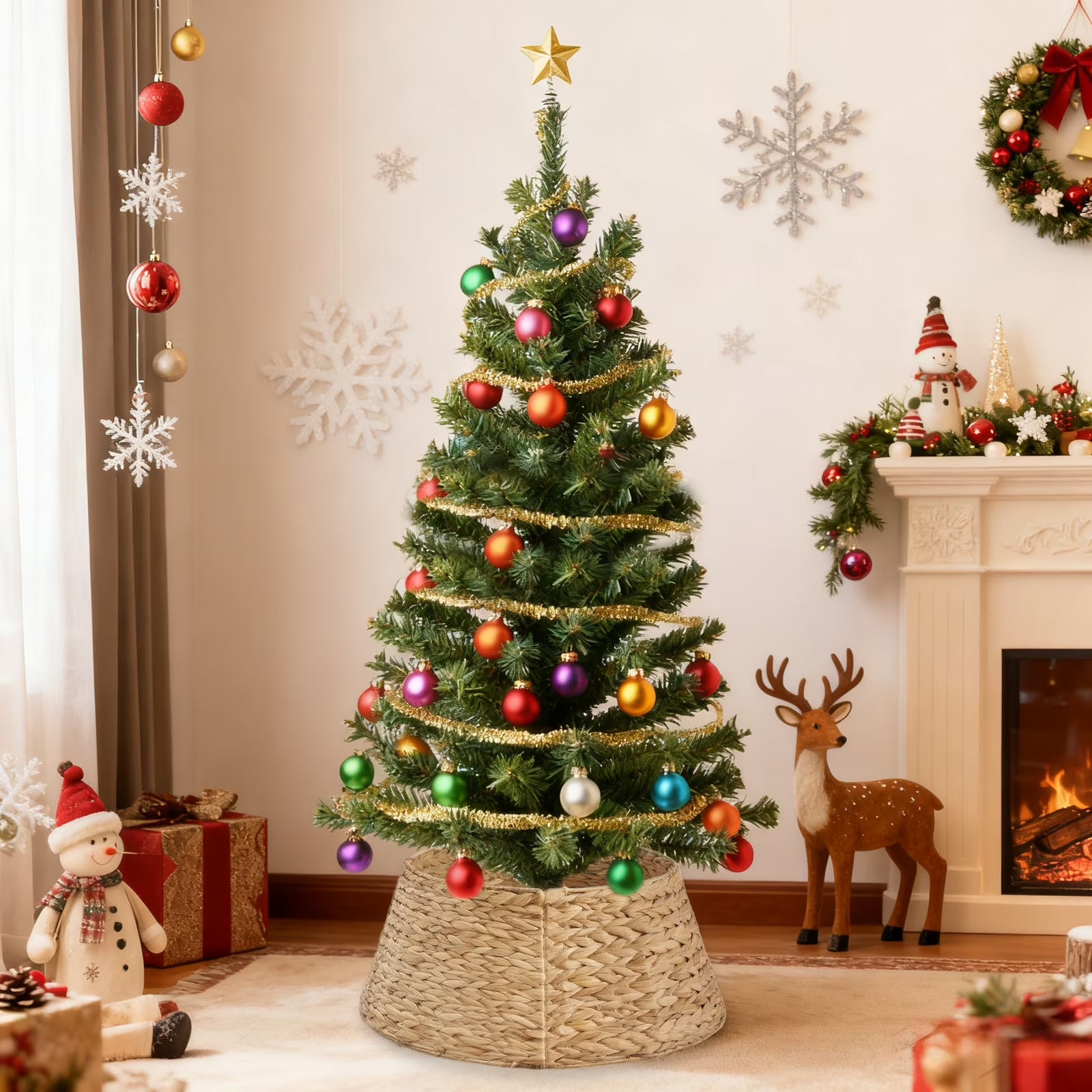 - Rustic Holiday Decor: With dimensions of 28'' x 21'' x 10'', this paper rope tree skirt collar fits most live and artificial Christmas tree stands. Please measure your tree stand to ensure compatibility. Crafted from premium paper rope, this tree collar exudes durability and adds a touch of beautiful rustic farmhouse style to your Christmas decorations. It enhances the warmth and coziness of your Christmas tree during the holiday season.